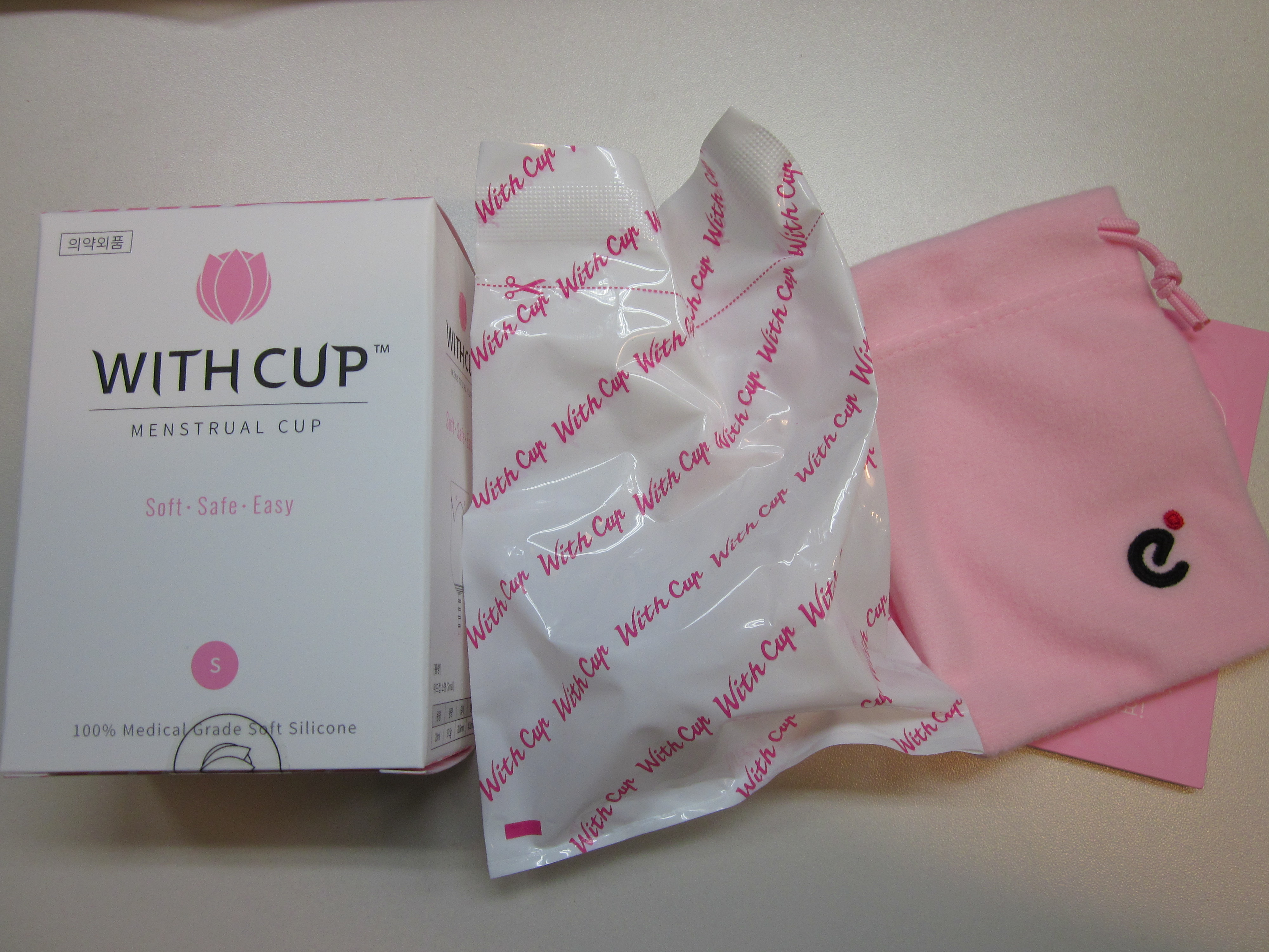 오호라 위드컵은 이렇게 핑크,핑크한 파우치랑 같이 동봉되어있는 모습이네요.