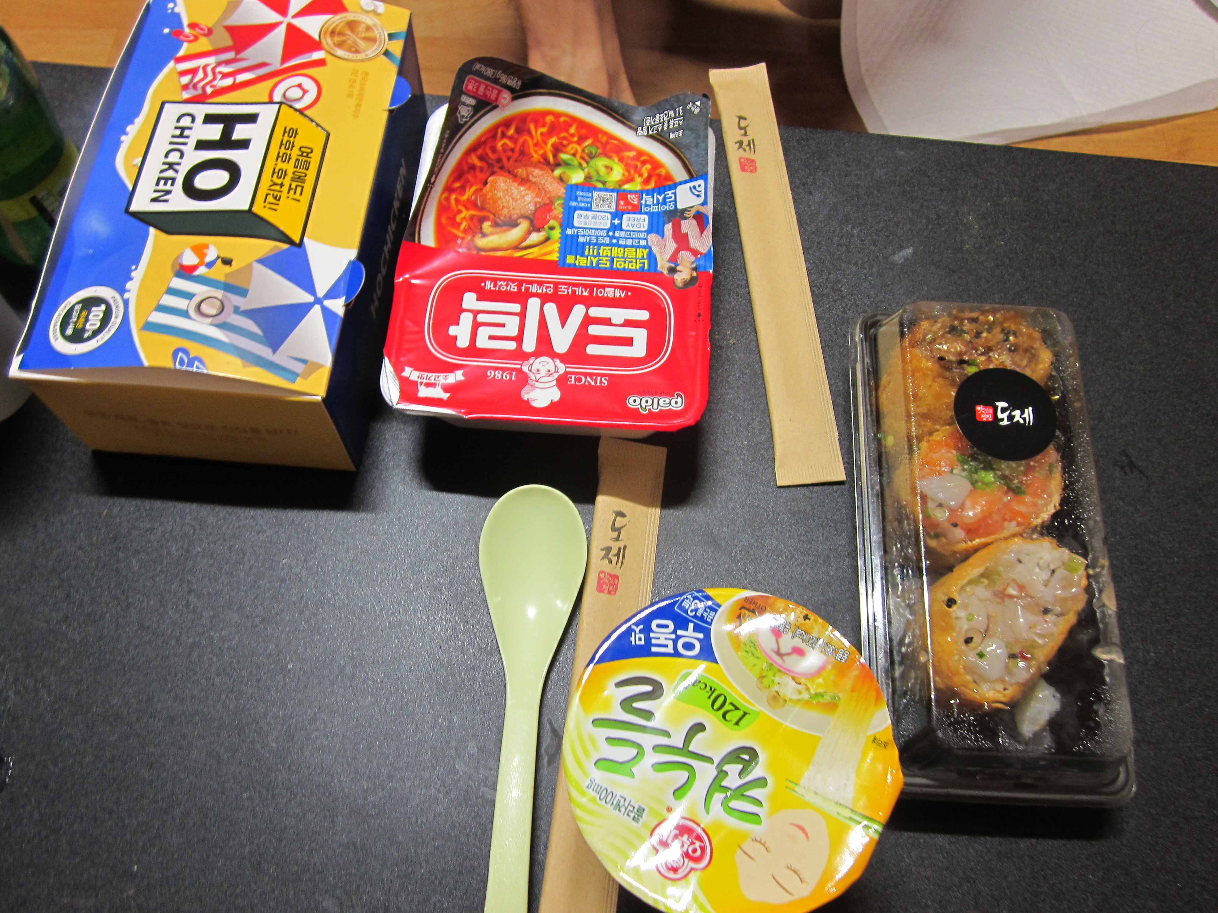 일단 저는 컵누들과 대왕유부초밥을 먹기로 하고, 남자친구는 도시락 컵라면과, 어제 시켜 먹고 남은