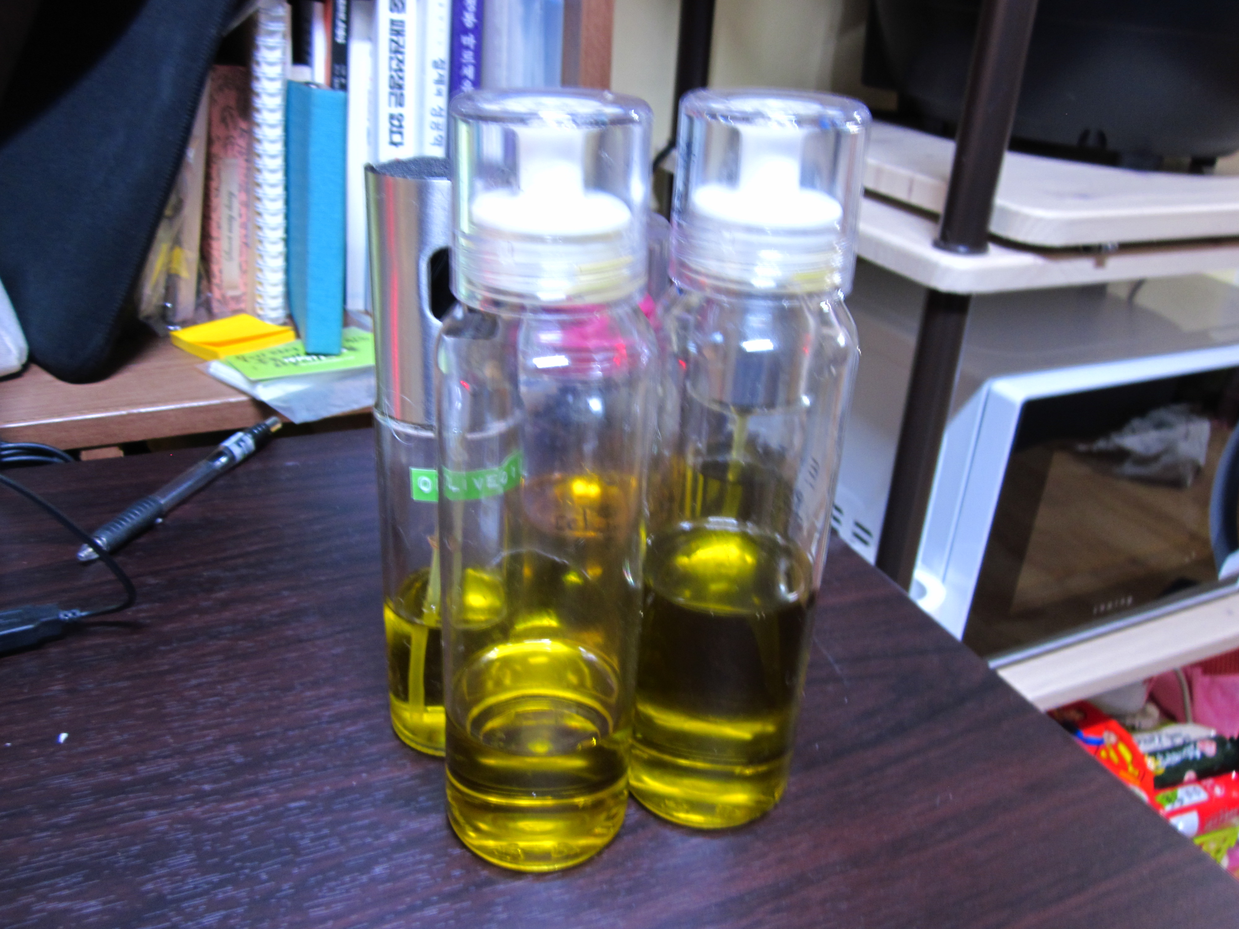 위 사진들인 제가 집에서 요리를 할때 사용하는 오일병들이에요.