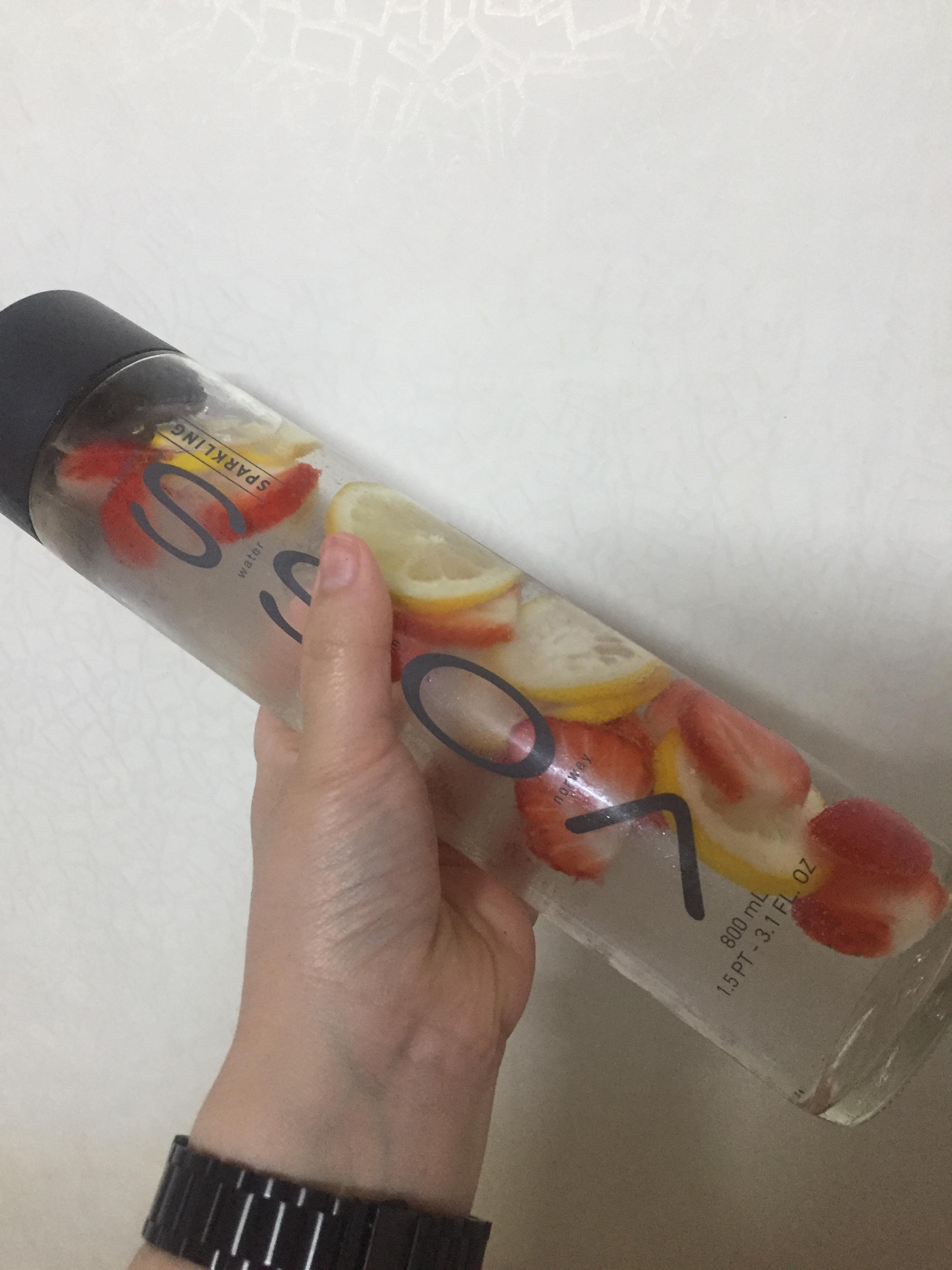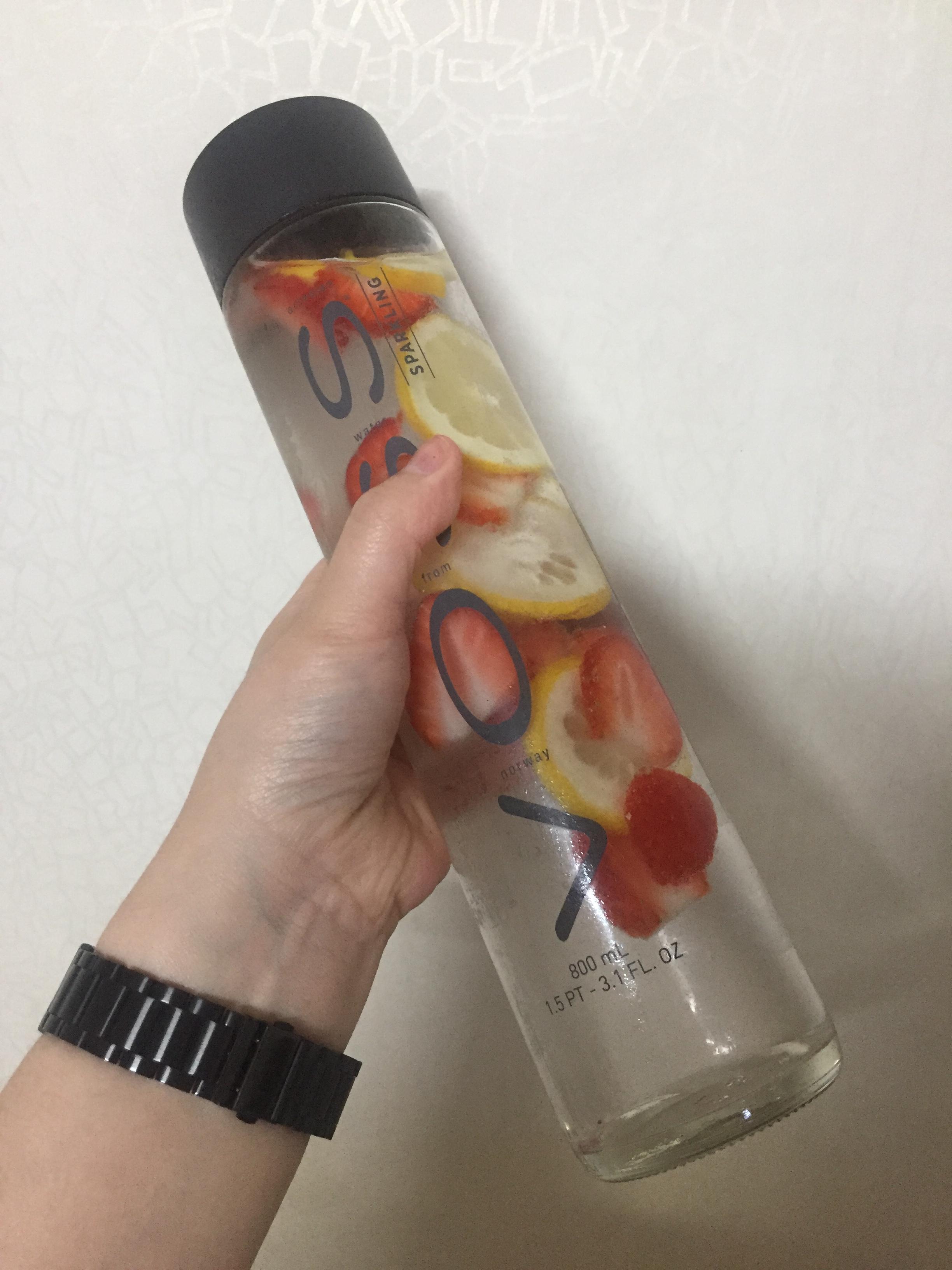 그래서 저는 탄산수에 딸기나 레몬을 썰어서