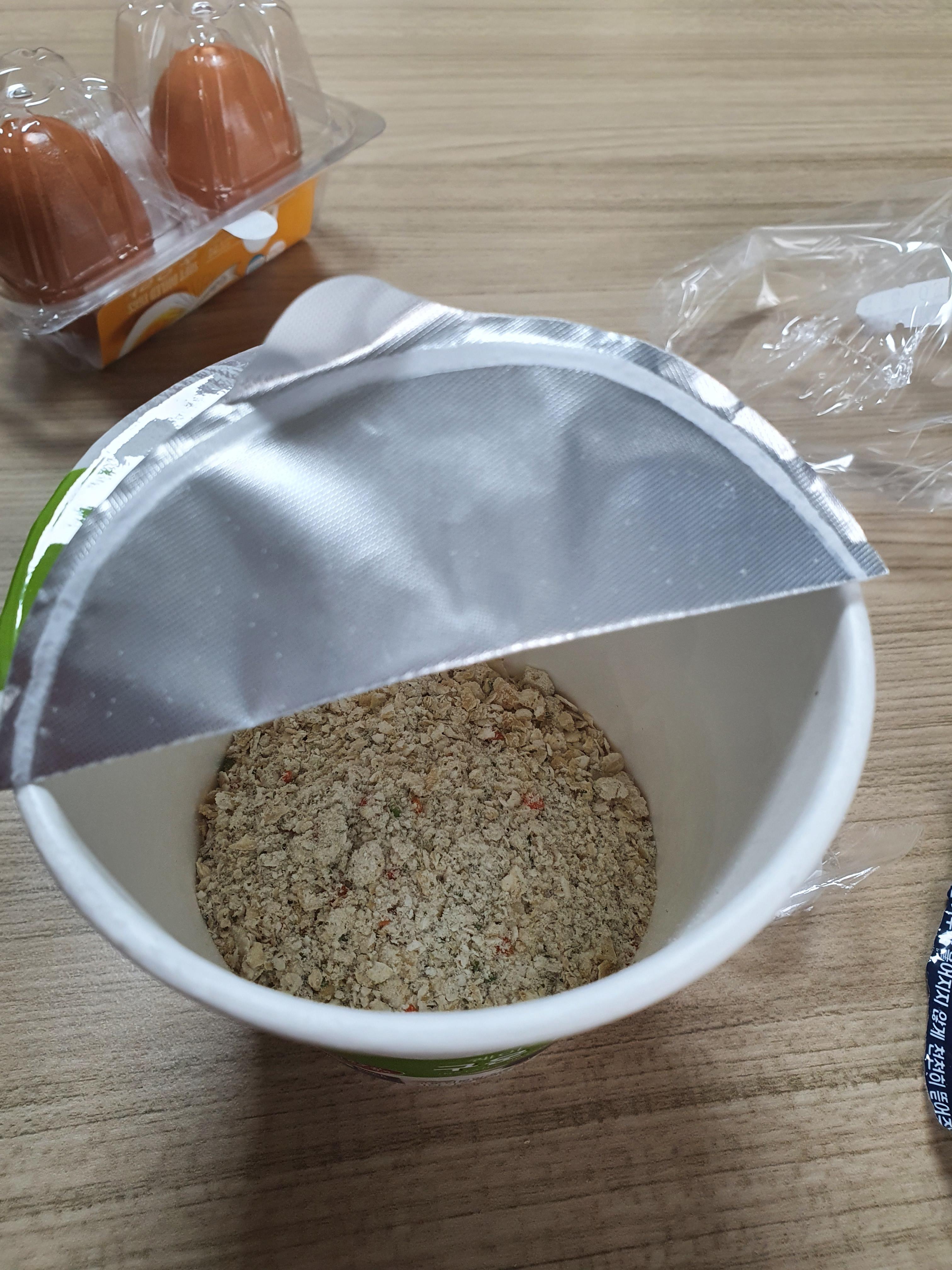 여기에 뜨거운 물을 부어 5분 불려서