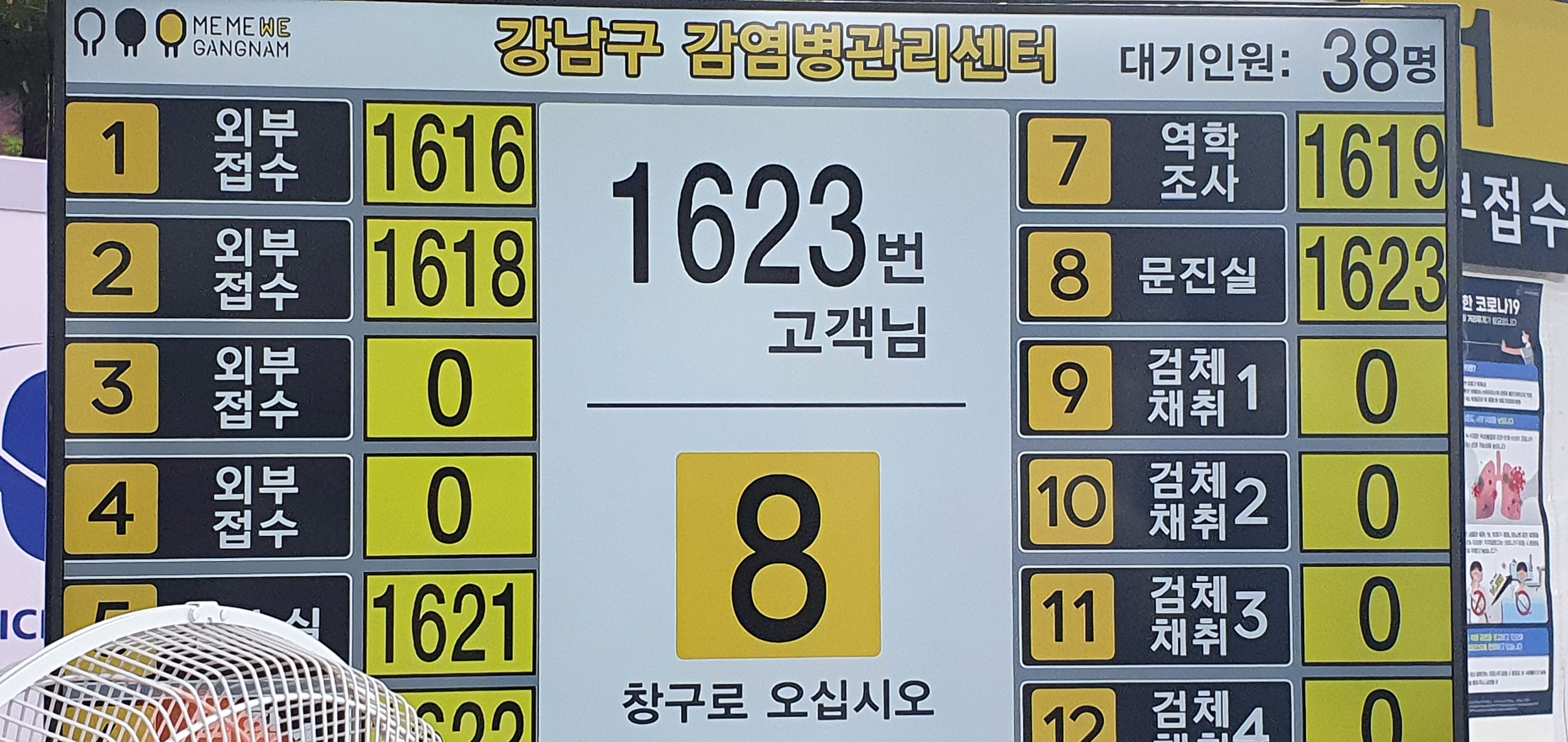문진표를 작성하고 번호표를 뽑았어요.