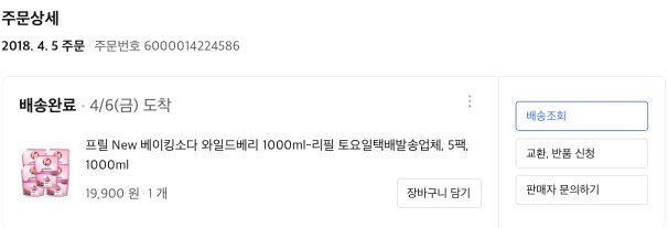 2018년 4월8일에도 프릴 베이킹소다 와일드베리향 1000mL 리필 팩을 대량으로 구매하였네요.