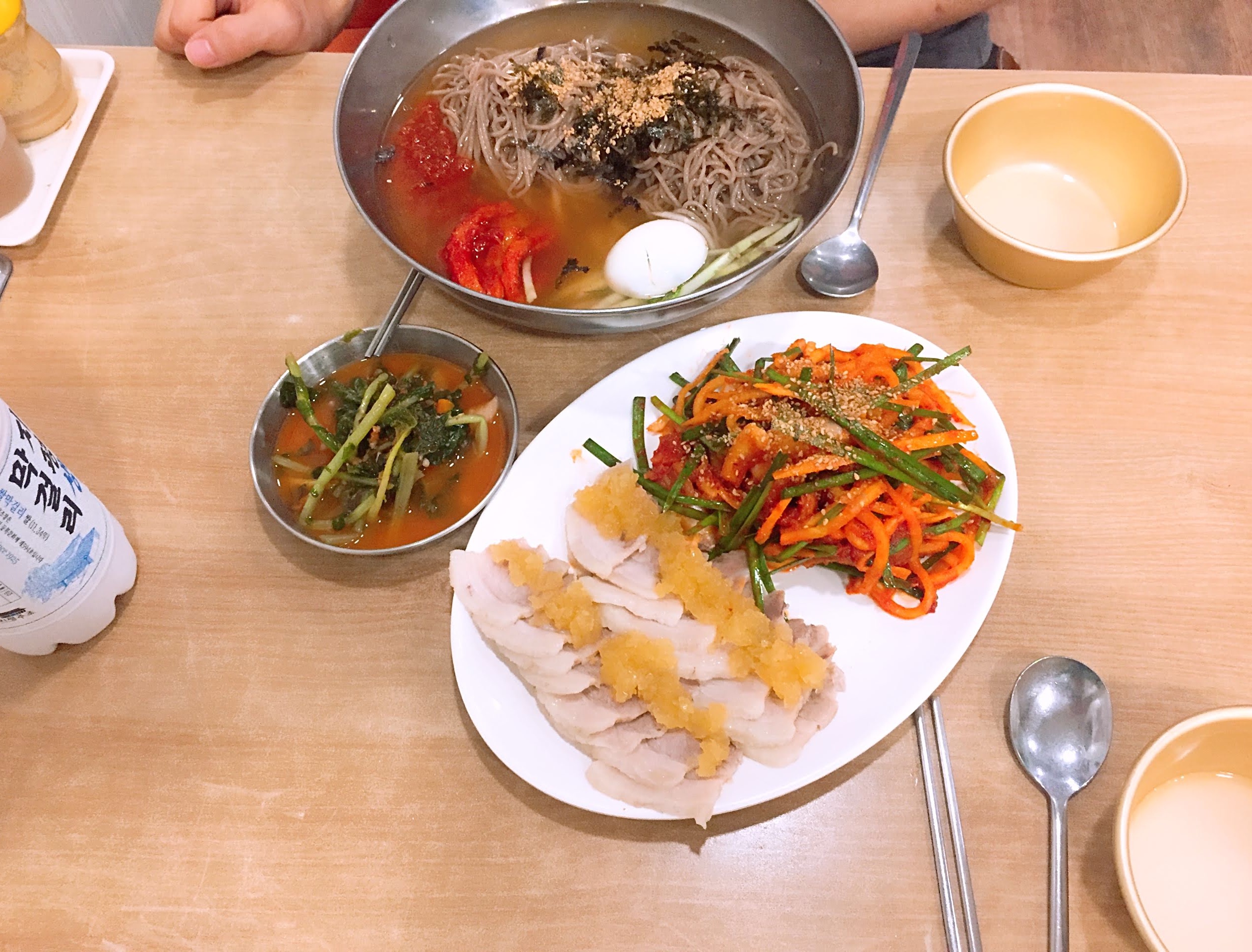 위 사진은 코다리 냉면과 마늘 수육모습이에요.