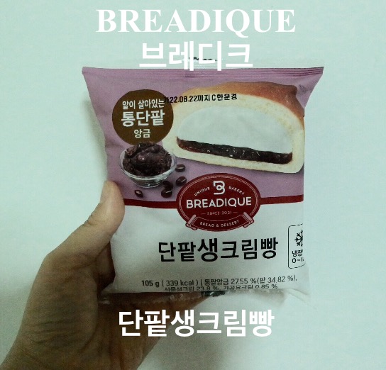 위 사진은 브레디크 생크림 빵 중 단팥생크림빵 모습입니다.