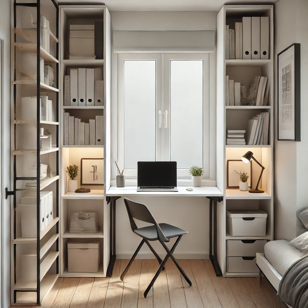 ✔ 벽에 부착하는 접이식 데스크 → 작은 원룸에서도 깔끔한 홈 오피스 공간 확보 가능