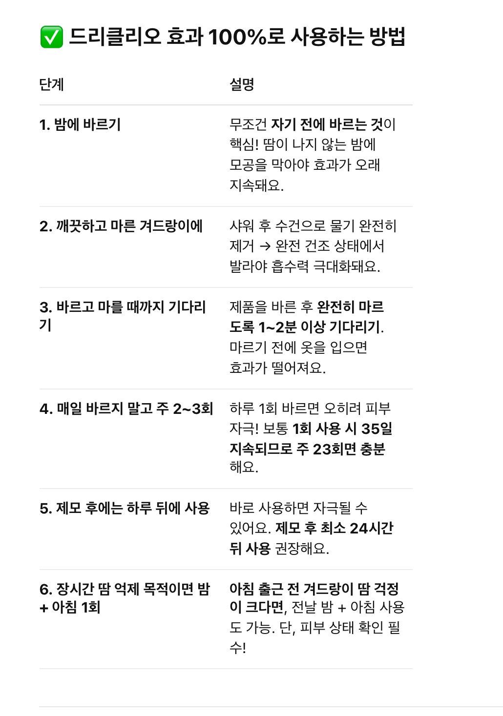의외로 드리클리오 사용법을 잘 모르는 분 많아