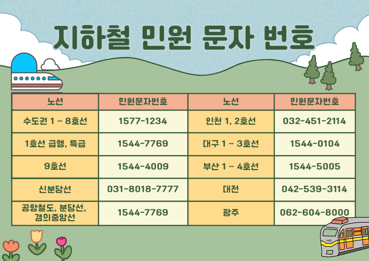 • 📩 수신번호: 1577-1234 (서울교통공사 고객센터)
