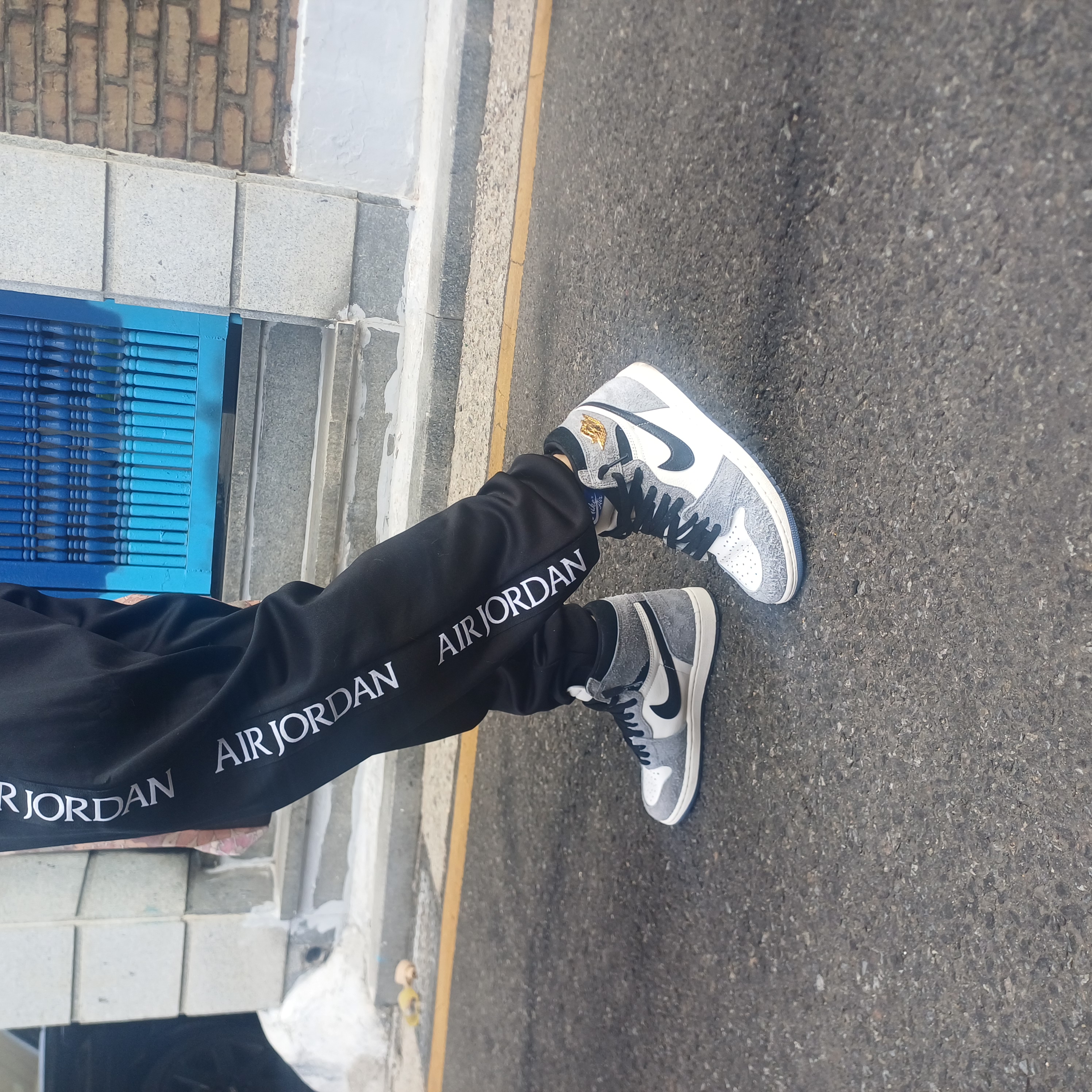 (조던 1판다)모델이랑 비슷해보이지만 블랙대신 부드러운 그레이가 섞여 부드러운 분위기로